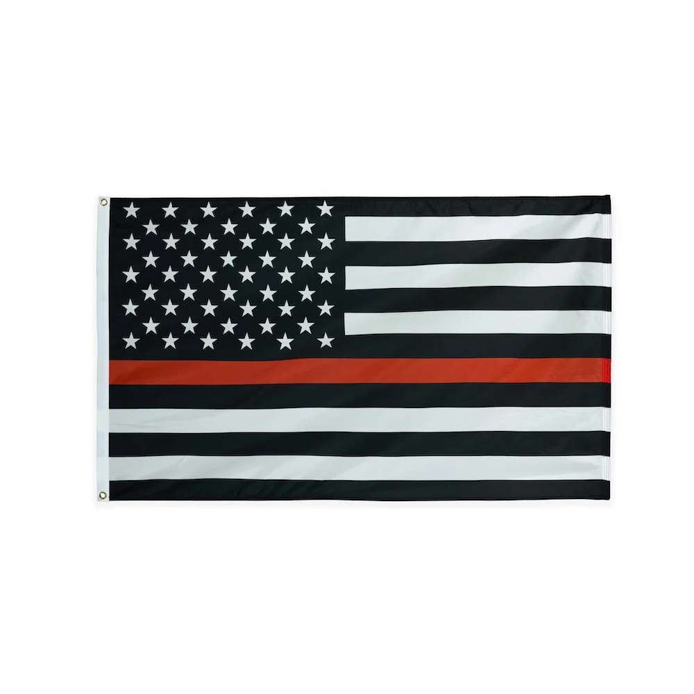 Honor the bravery and sacrifice of the fire service with this 3” × 5′ Firefighter Stars & Stripes Flag. Made from durable nylon, this flag features embroidered stars and sewn stripes in a classic black-and-white American flag design, accented by a single red stripe that symbolizes courage, dedication, and remembrance for firefighters. Ideal for fire stations, memorials, ceremonies, and outdoor display, it is built for lasting performance and a powerful, respectful presentation.